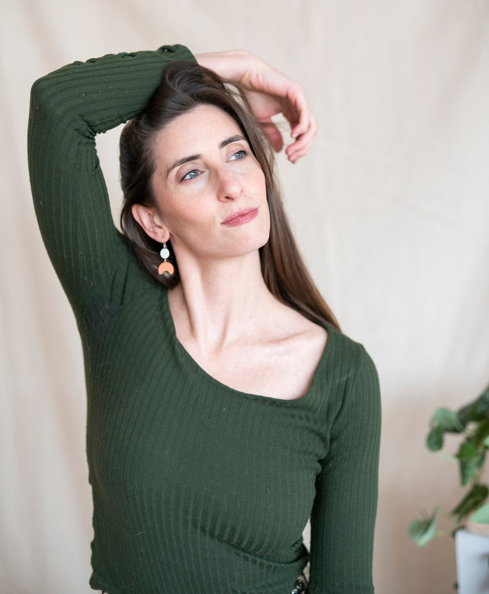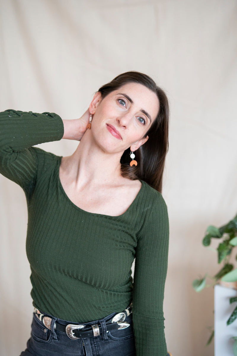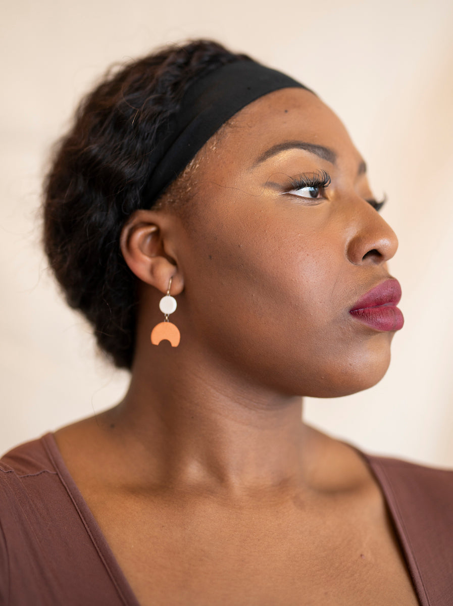- Earrings come in a reusable organic cotton pouch.