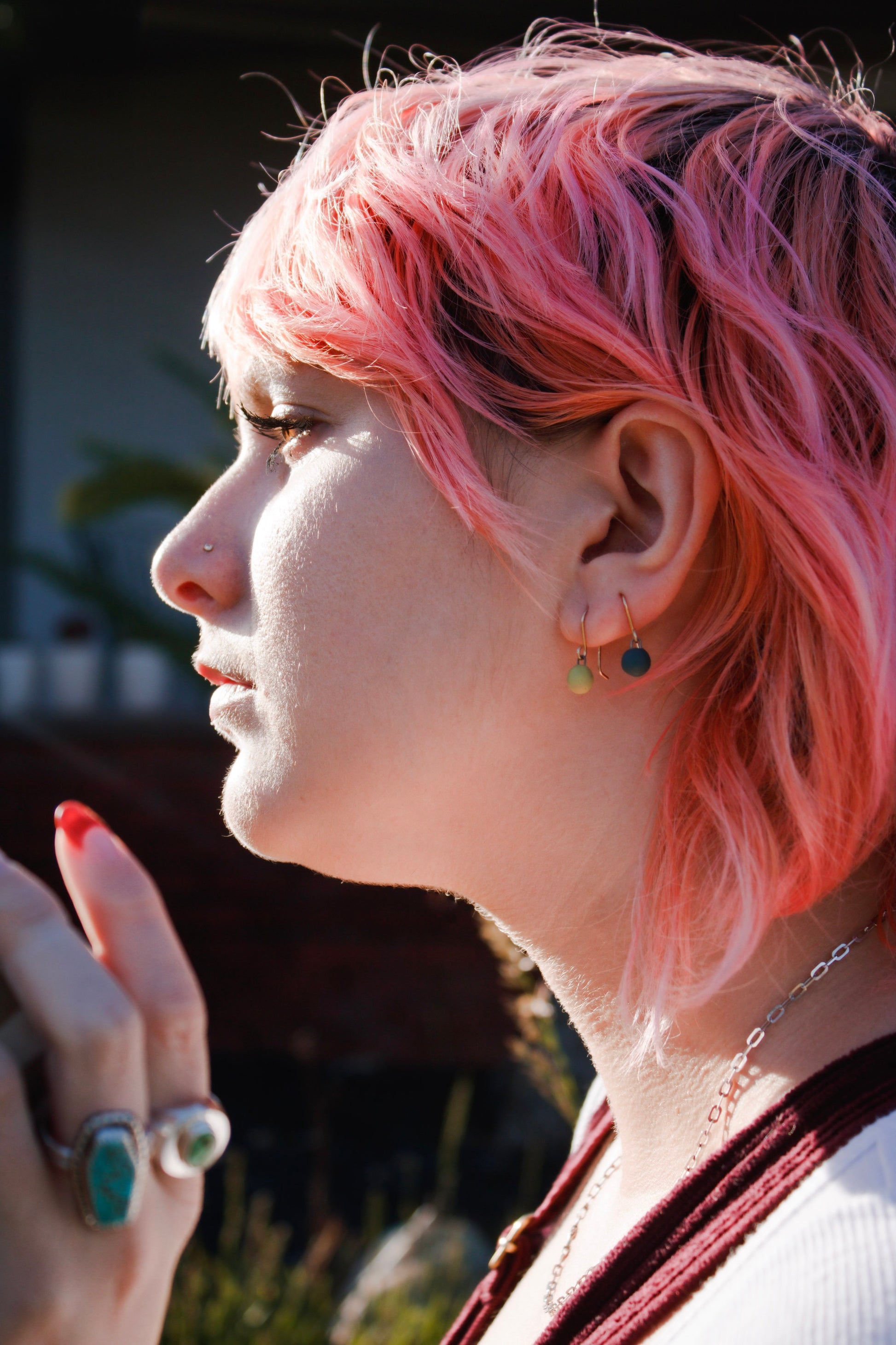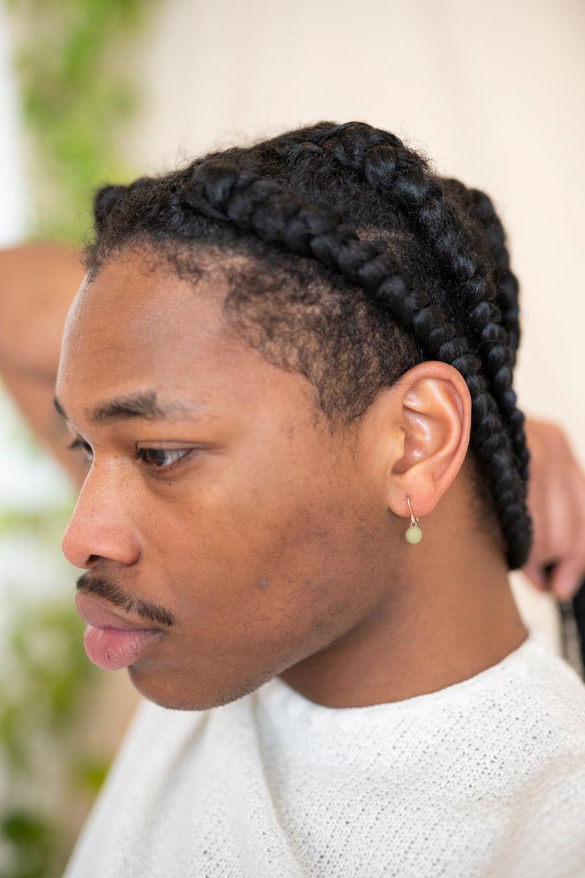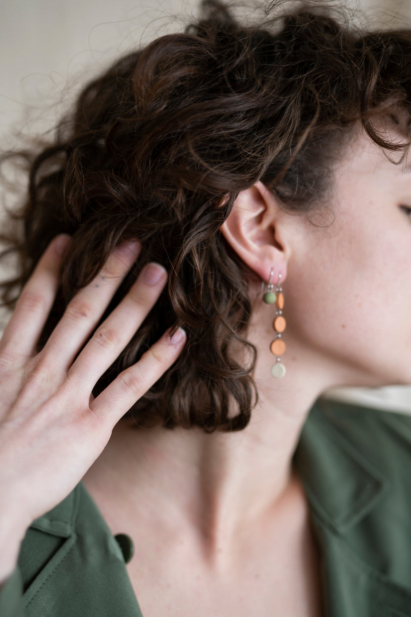 - Earrings come in a reusable organic cotton pouch.