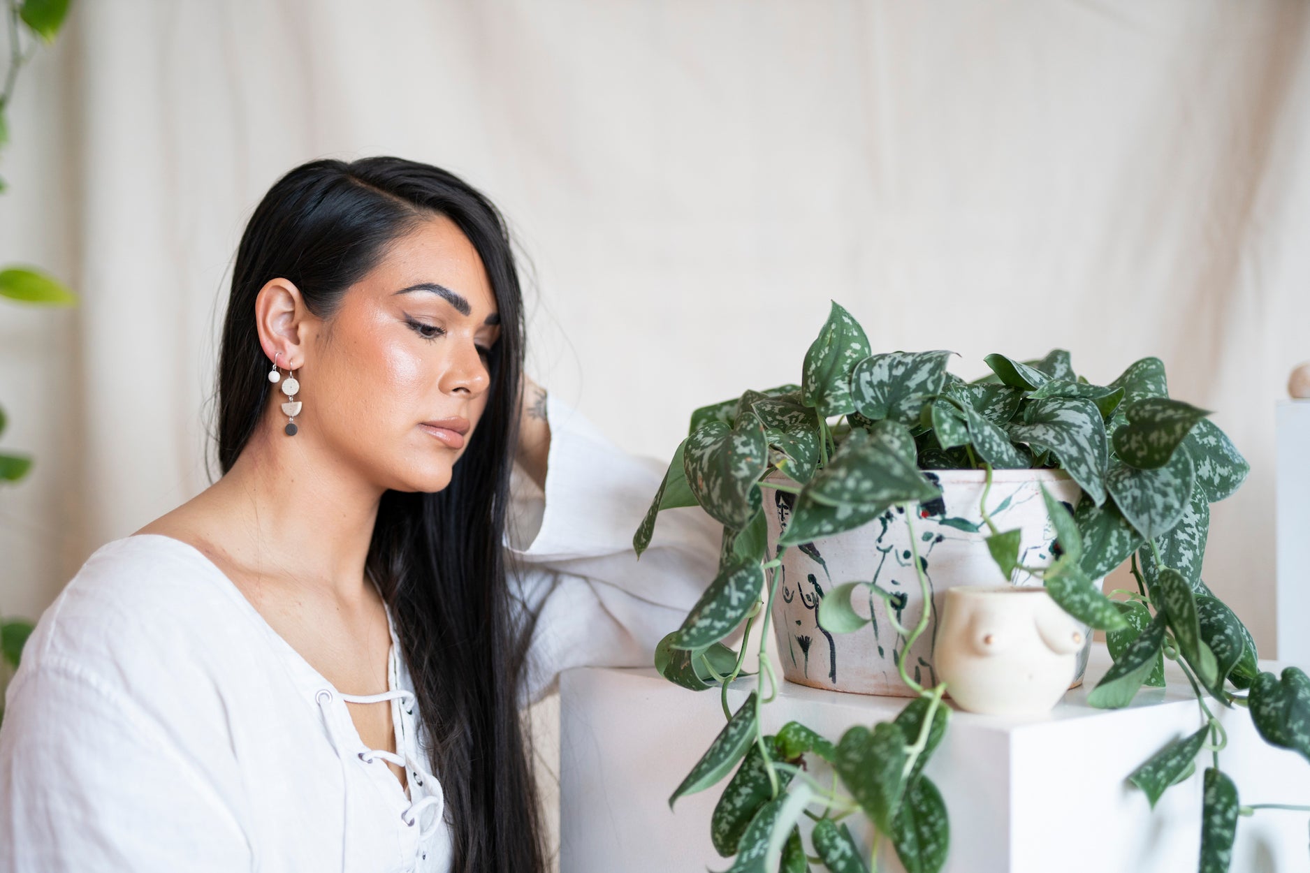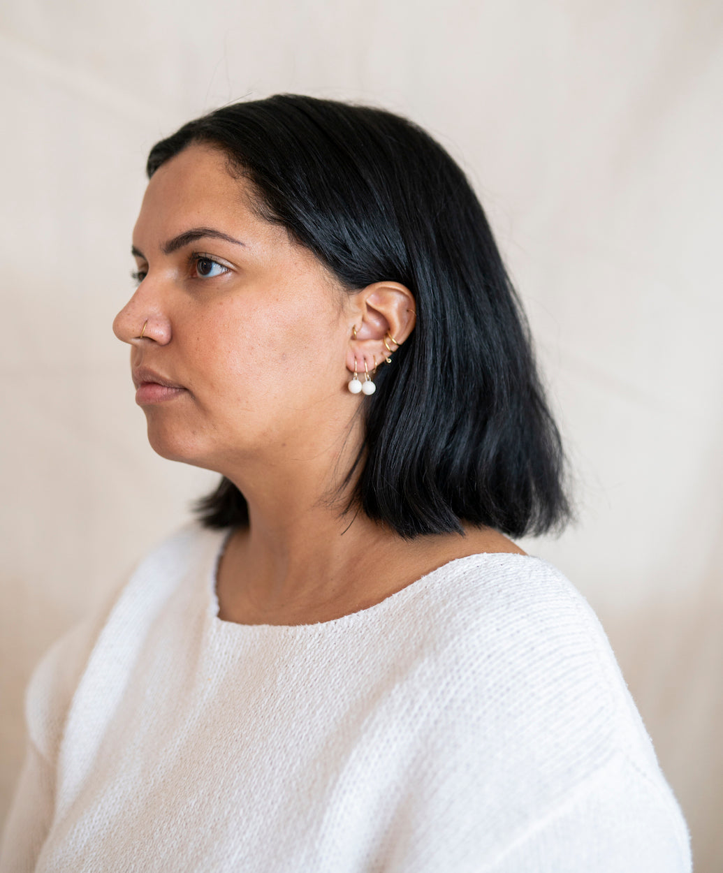 - Earrings come in a reusable organic cotton pouch.