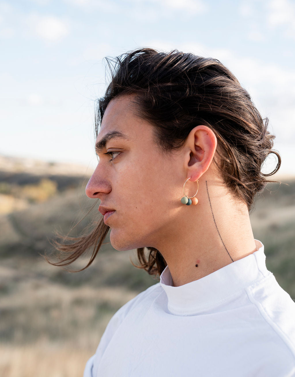 This look: Randi and Mikey are wearing stacked Dotties. Charmed Hoops are interchangeable. Loose charms can be purchased and added to your hoops here.