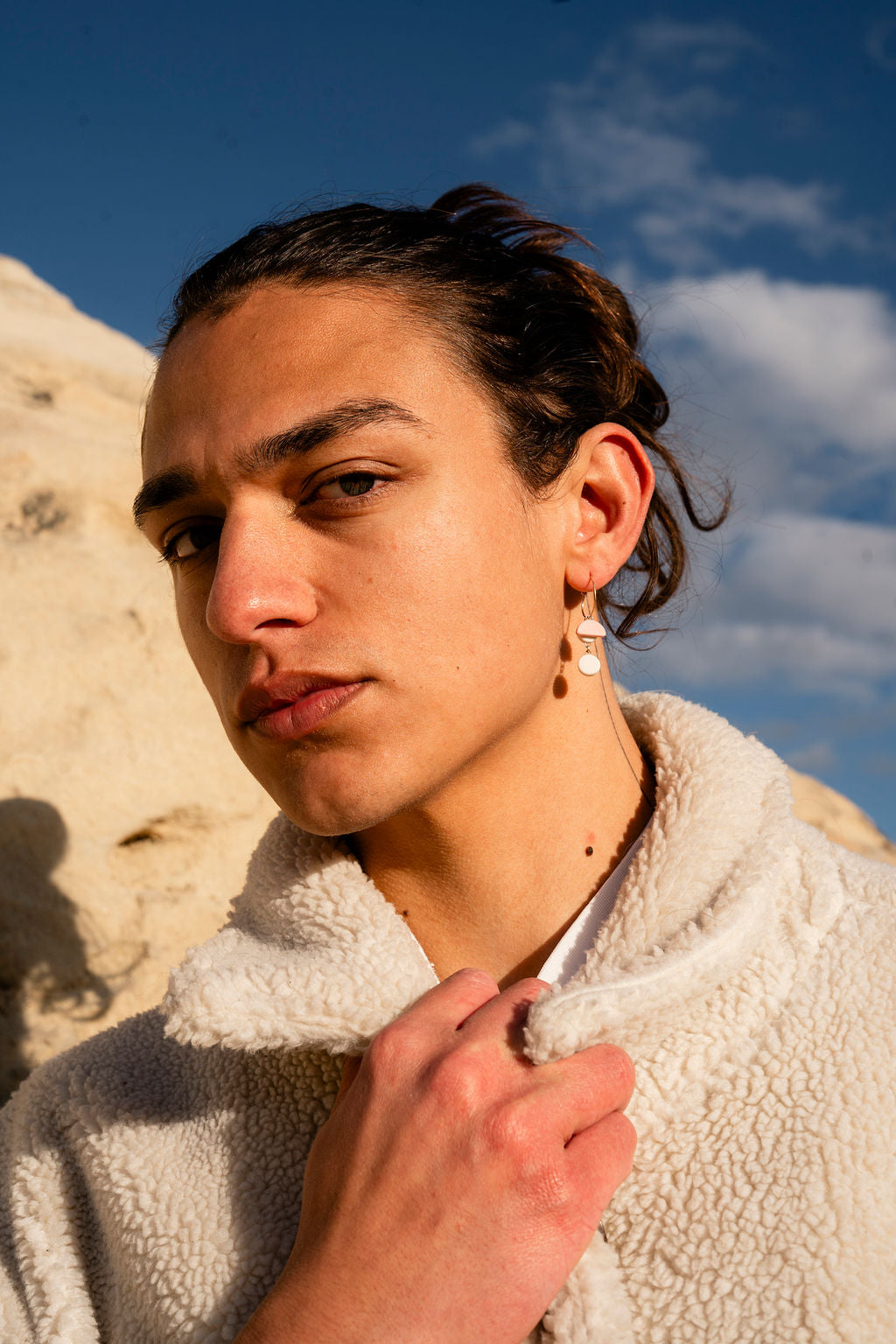 This look: Mikey is wearing a half-moon in blush stacked over double Stella charms Charmed Hoops are interchangeable. Loose charms can be purchased and added to your hoops here.