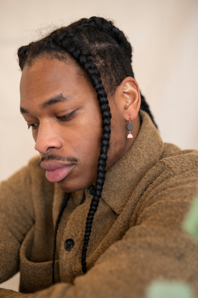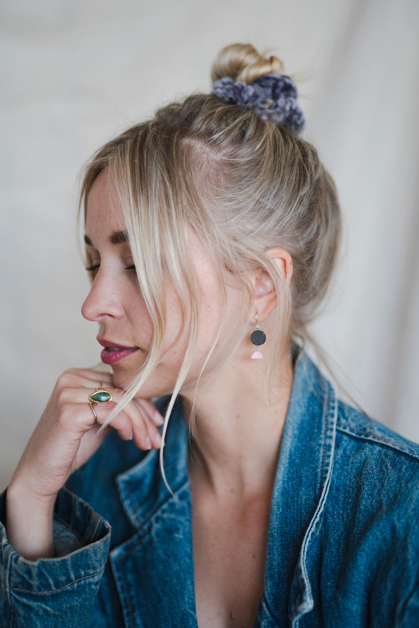 - Earrings come in a reusable organic cotton pouch.