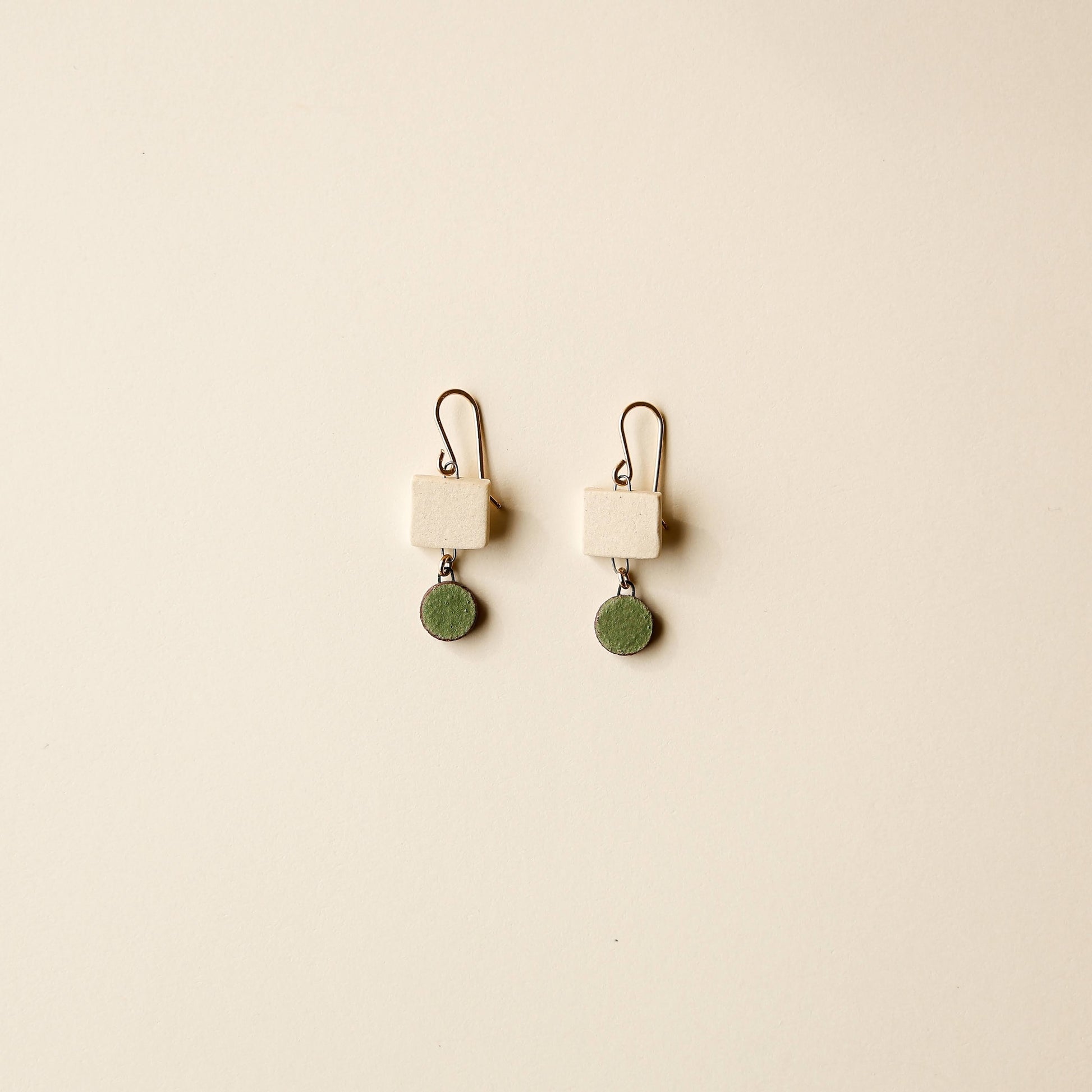 Handmade ceramic earrings. Cut from a slab of earthenware and stained porcelain.