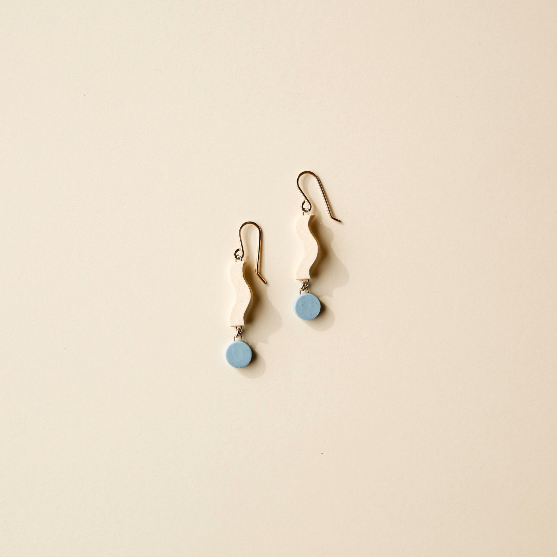 Ceramic squiggles cut by hand. Inspired by water flow.