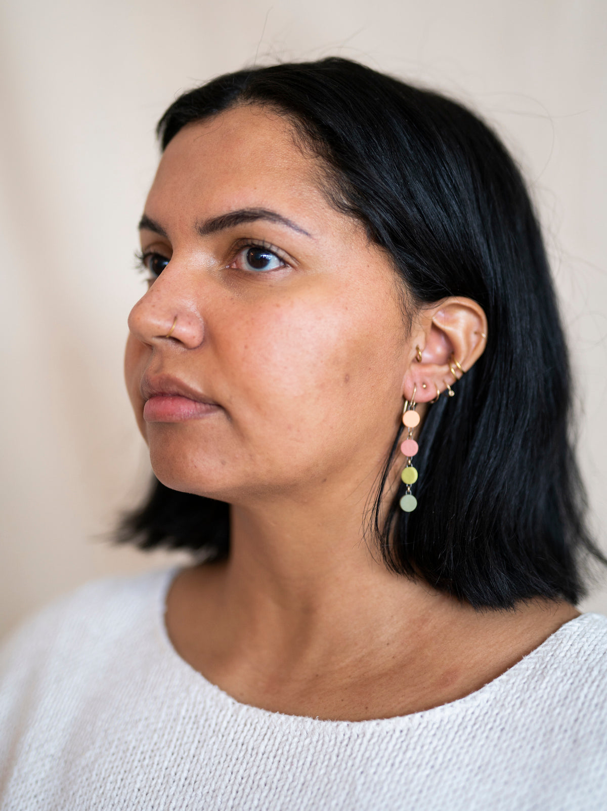 The Stella 4 is our most popular design. The perfect mid length earring that is light and danceable. The Stellas will likely become the most complimented earring in your collection.