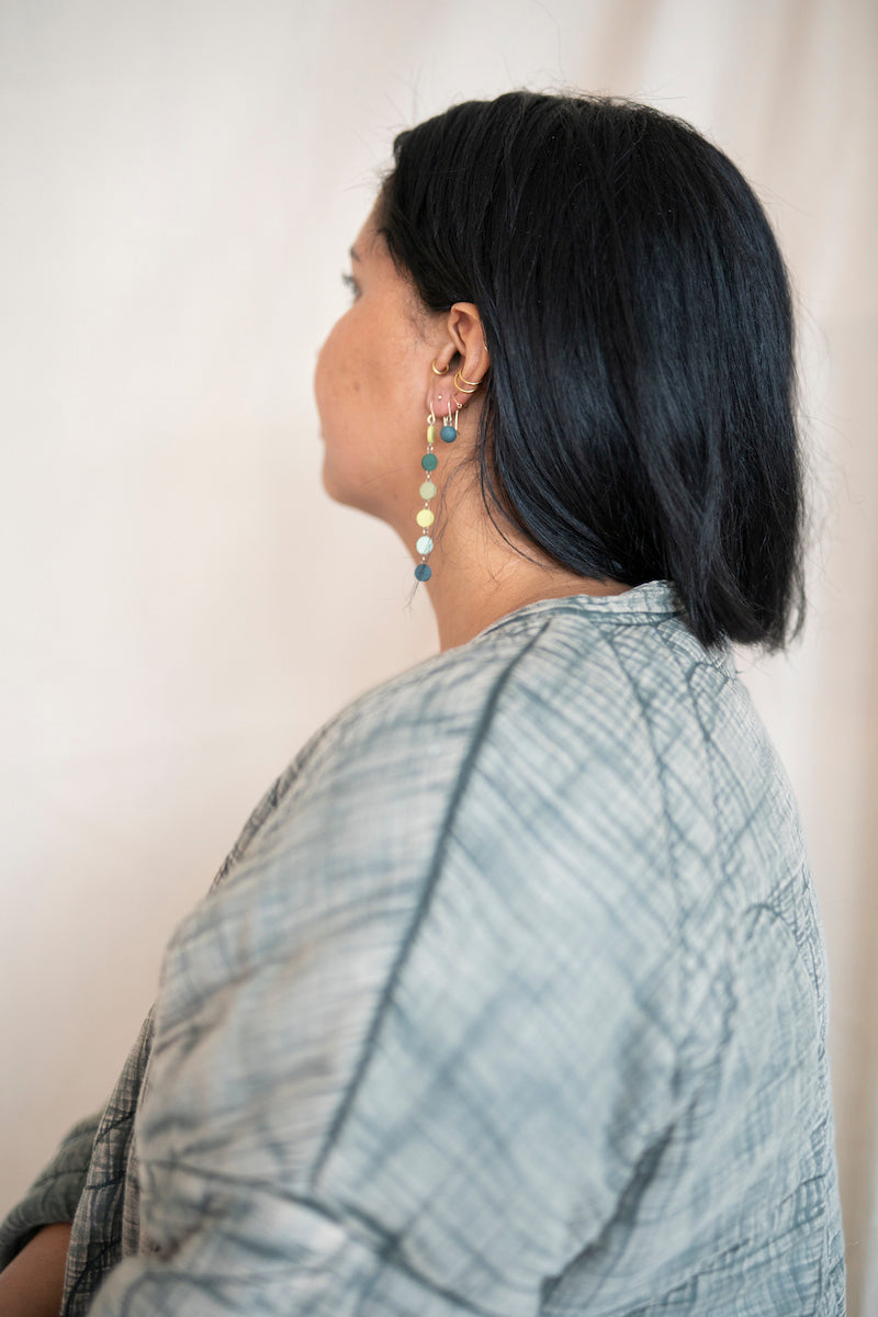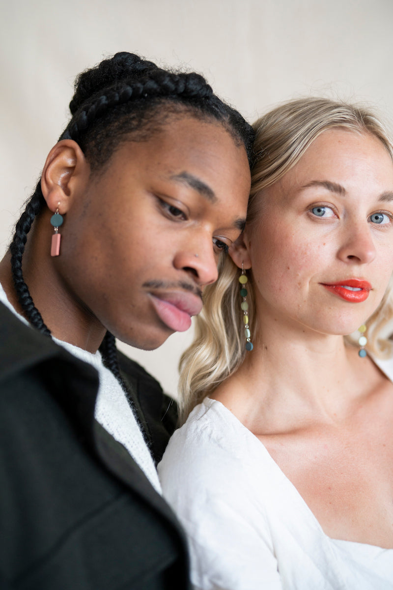 - Earrings come in a reusable organic cotton pouch.