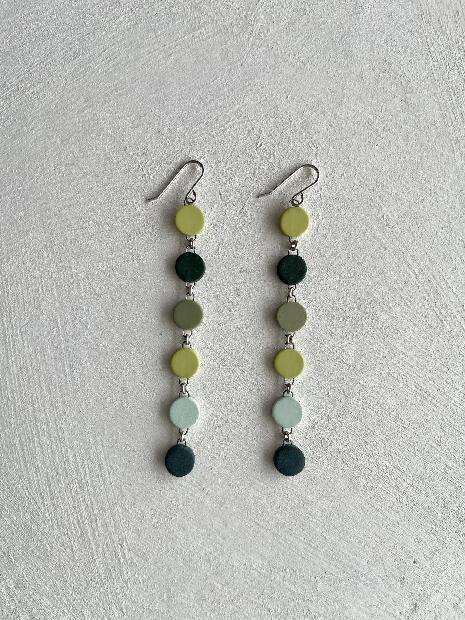 - Stained porcelain in chartreuse, dark leaf, pine, avocado, and sage.