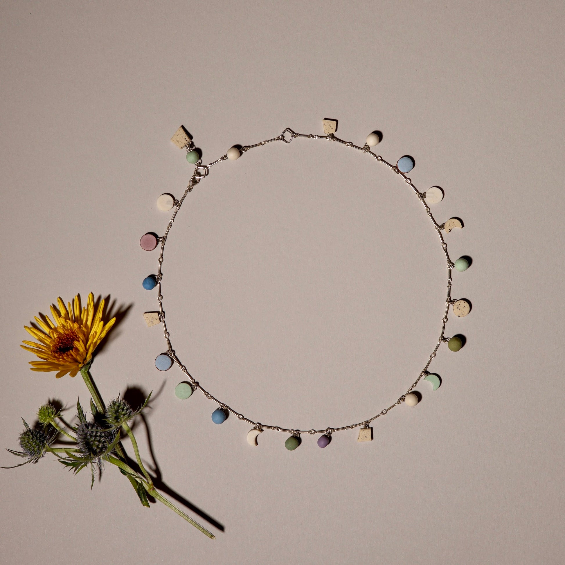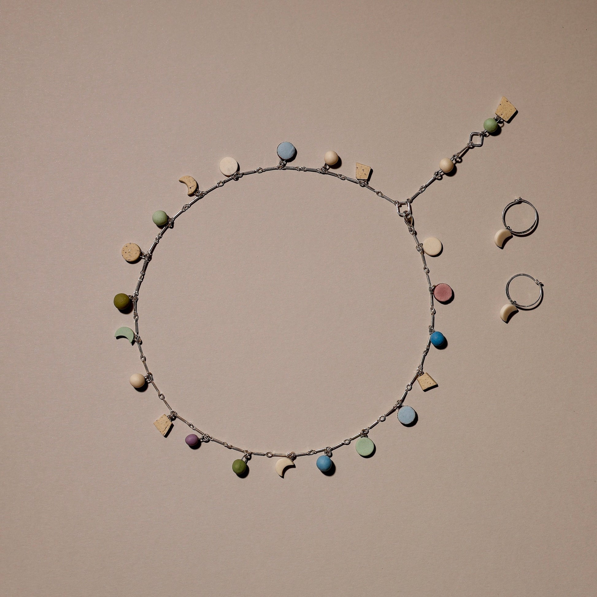 Hand formed ceramic charms, every other link (High Charm Density)