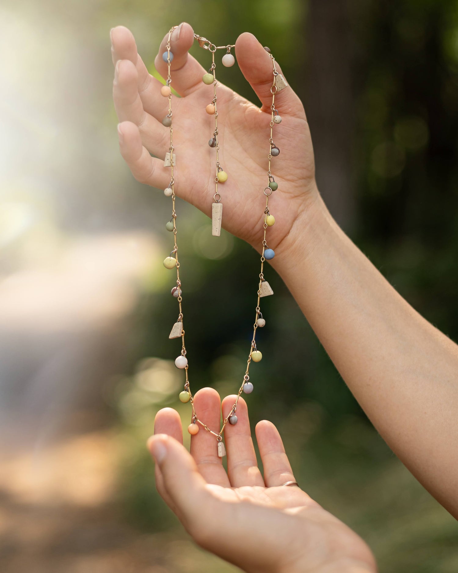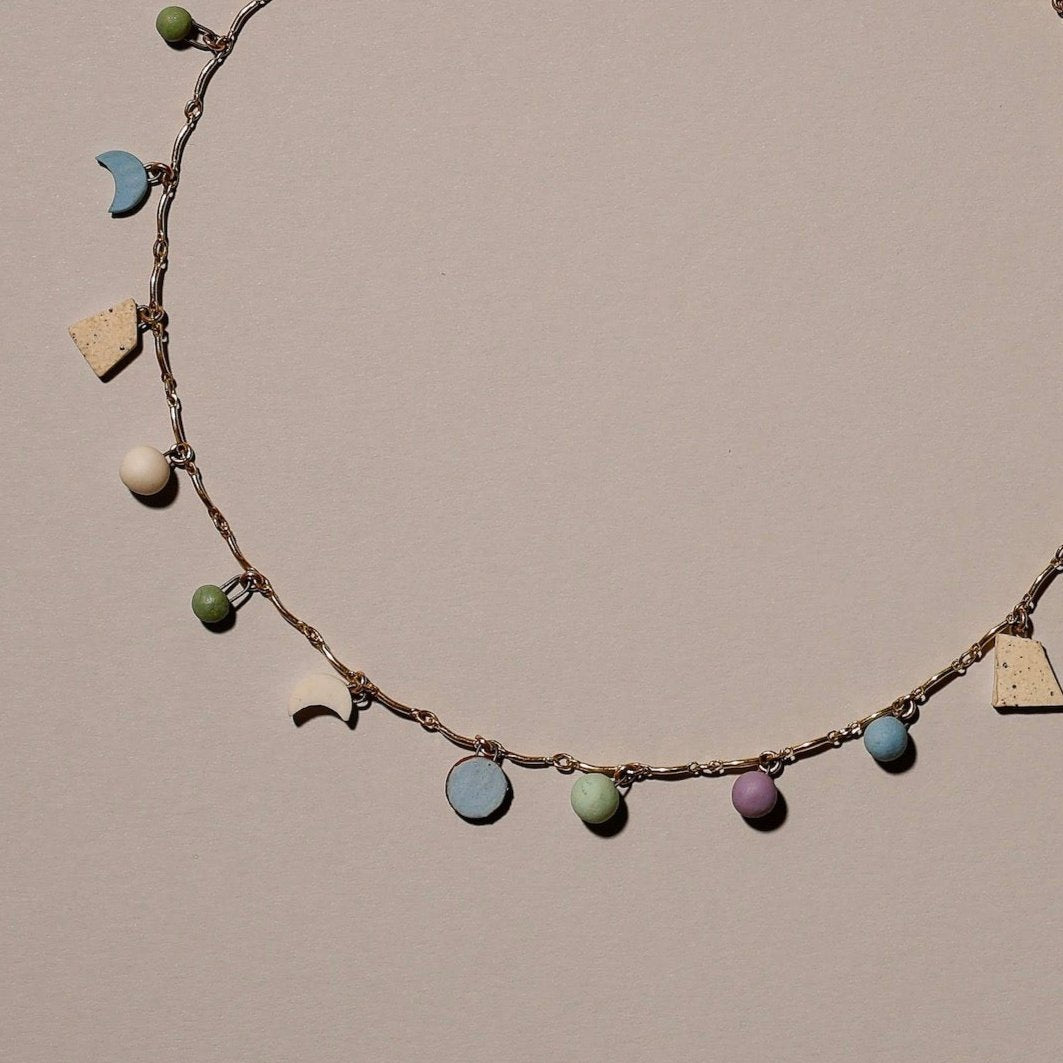 Tori inspired this necklace. She is a sister, a dancer, and a free spirit, who spends her time on the rivers of Idaho and on the beaches of Australia. Kayaker, surfer, dancer, she does it all while wearing clay <3