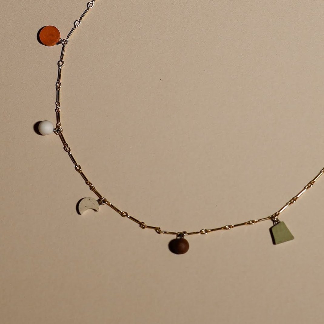 Tori inspired this necklace. She is a sister, a dancer, and a free spirit, who spends her time on the rivers of Idaho and on the beaches of Australia. Kayaker, surfer, dancer, she does it all while wearing clay <3