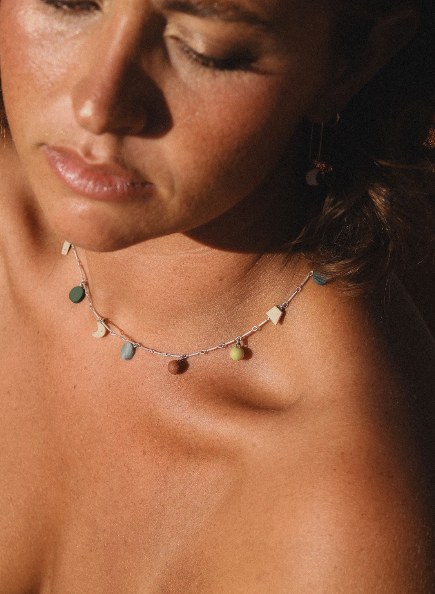 Tori inspired this necklace. She is a sister, a dancer, and a free spirit, who spends her time on the rivers of Idaho and on the beaches of Australia. Kayaker, surfer, dancer, she does it all while wearing clay <3