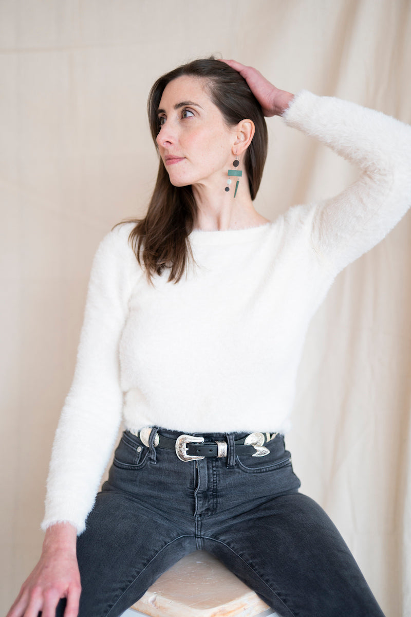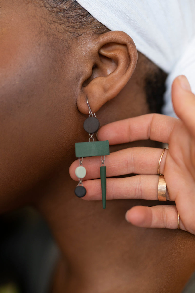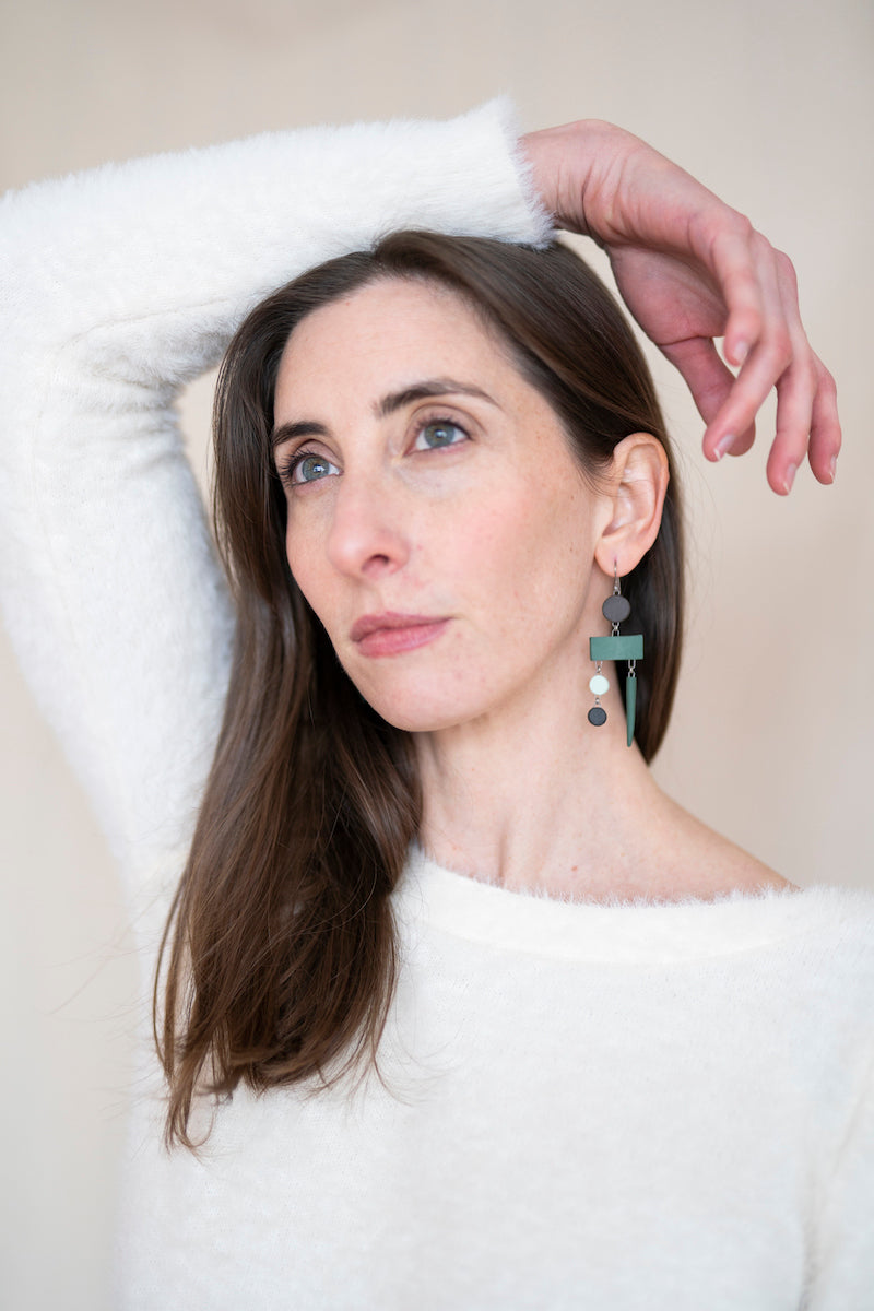 - Earrings come in a reusable organic cotton pouch.
